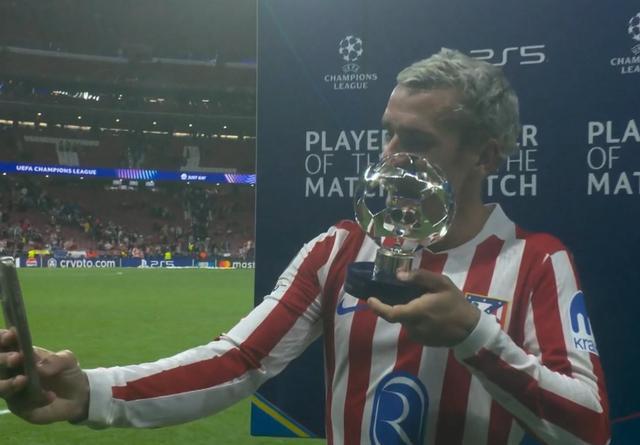 欧冠半决赛首回合,马德里竞技主场1-1战平阿森纳,马竞前锋格列兹曼当选欧冠官方全场最佳球员。